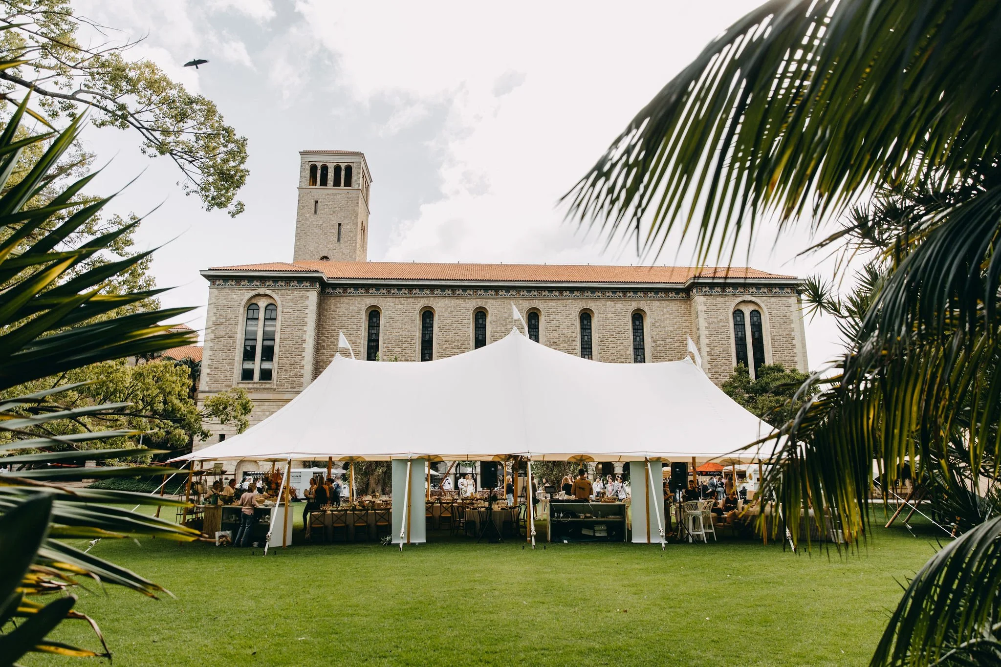 The University of Western Australia Great Lawn is surrounded by UWA’s iconic sandstone building, manicured gardens, and mature trees - creating an elegant, romantic setting that perfectly complements Tp and co’s Sperry Tents. UWA offers seamless Ceremony-to-Reception flow, with multiple options for ceremony locations. UWA has proven to be very helpful with the wedding planning process, as they are able to offer full-service support.